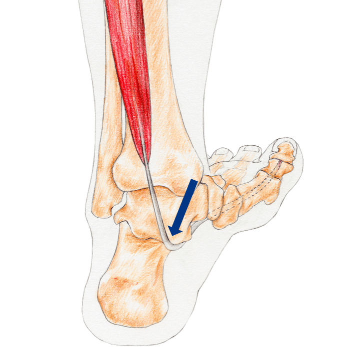 Tijdens het lopen glijdt de pees door de tarsale tunnel.